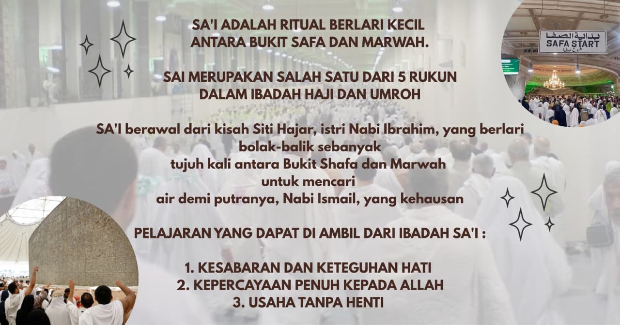 Sai membawa kita lebih dekat kepada Allah SWT dan mengingatkan kita tentang kesabaran, pengorbanan, serta kepercayaan mutlak kepada-Nya. Dalam artikel ini, kita akan membahas makna sejarah Sai dalam ibadah haji dan umroh. Simak ulasan lengkapnya di bawah ini, yaa.